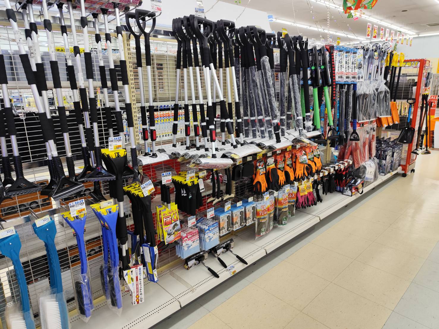 除雪用のスコップやスノーダンプなどは、ホームセンターで購入できます。また車の中にはスノーブラシを入れておくと便利です。